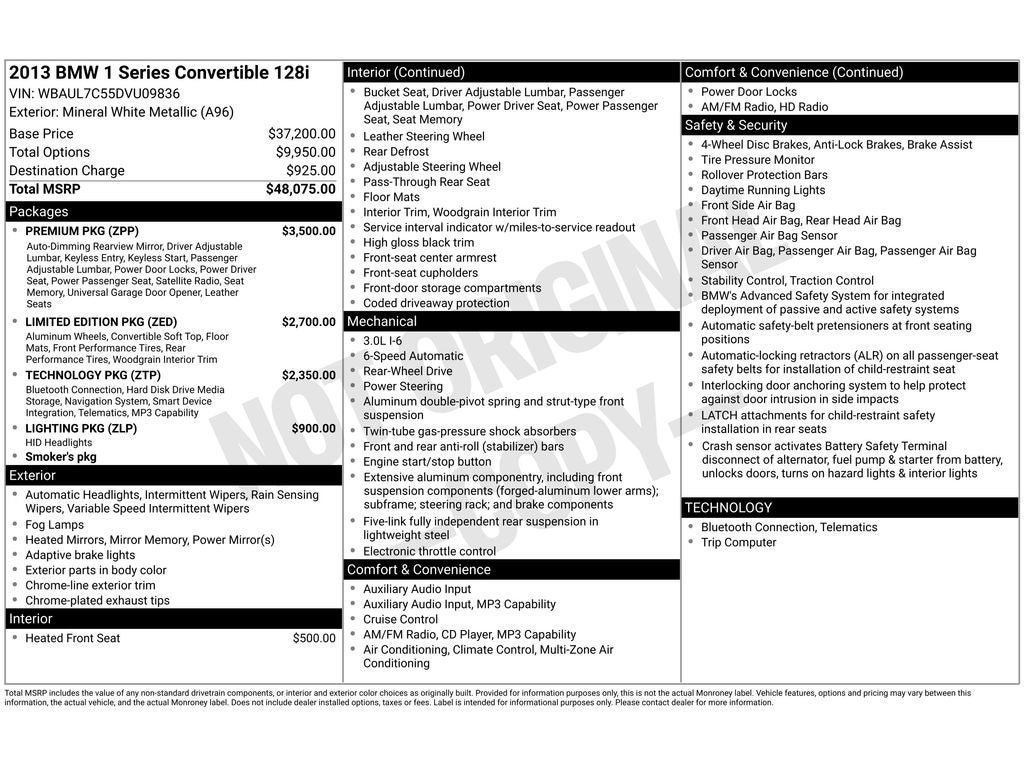 AS/IS and may need a few mechanical repairs, ** LEATHER SEATING **, ** FACTORY NAVIGATION **, ** CLEAN CARFAX / NO ACCIDENTS **, ** SIRIUS RADIO **, ** HEATED SEATS **, ** Bluetooth® **, ** RAIN SENSING WIPERS **, 128i, 2D Convertible, 3.0L I6 DOHC 24V, 6-Speed Automatic Steptronic, RWD, 4-Way Adj. Power Lumbar Support For Front Seats, Ambiance Lighting, Auto-Dimming Interior & Exterior Mirrors, Auto-Dimming Rear-View Mirror, Automatic temperature control, BMW Apps, BMW Assist w/Bluetooth®, Boston Leather Upholstery, CD player, Comfort Access Keyless Entry, Front dual zone A/C, Front fog lights, Fully automatic headlights, Interior Mirror w/Compass, Online Information Services, Premium Package, Real Time Traffic Information, Satellite Radio, Smartphone Integration, Technology Package, Universal Garage-Door Opener, Voice-Command.