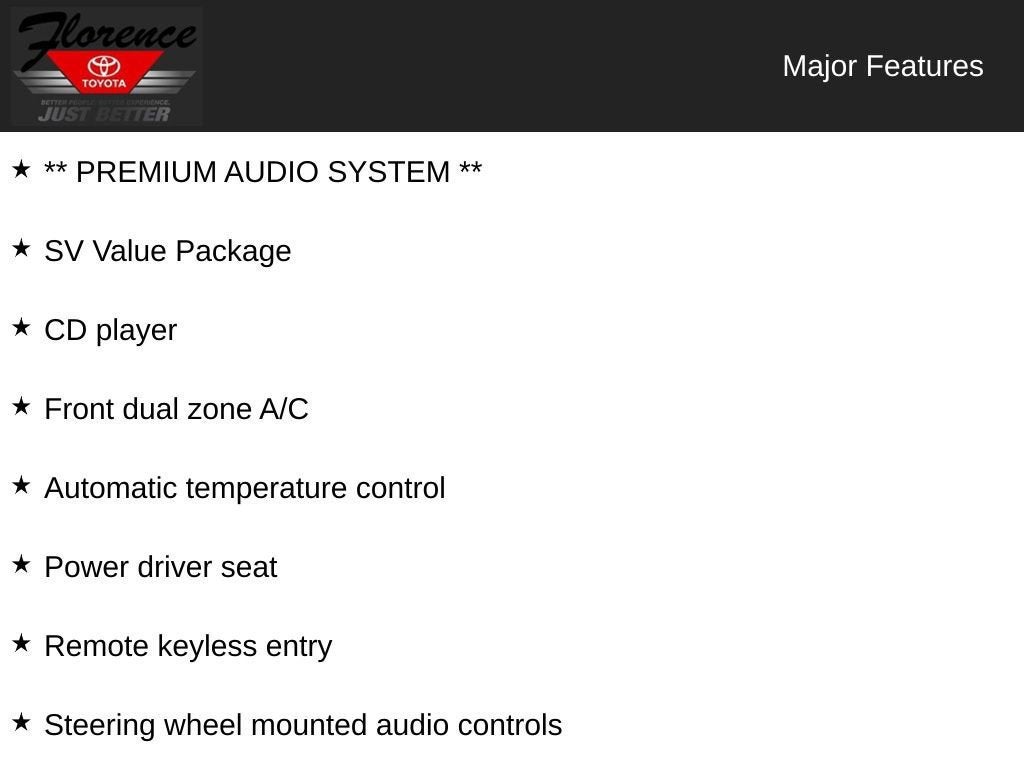 SV Value Package: BOSE Audio System; Heated Front Seats; Heated Steering Wheel; Heated Outside Mirrors. Carpeted Floor Mats/trunk Mat (5-Piece Set). Splash Guards. **Equipment listed is based on original vehicle build and subject to change. Please confirm the accuracy of the included equipment by calling the dealer prior to purchase.**