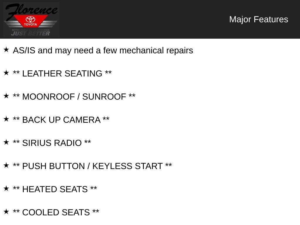 Experience luxury, comfort, and reliability with this 2017 Lexus ES 350 Base, now available in Florence, SC. Powered by a smooth and responsive 3.5L V6 gasoline engine with front-wheel drive, this Lexus ES 350 delivers confident highway passing and refined daily driving. The cabin welcomes you with premium leather seats that provide supportive long-distance comfort and a quiet, composed ride Lexus is known for. Loaded with advanced safety and convenience features, this Lexus ES 350 includes Adaptive Cruise Control to maintain safe following distances, Lane Departure Warning to help keep you centered in your lane, and Rear Parking Sensors to make tight maneuvers stress-free. Hands-Free Bluetooth® keeps your focus on the road while enabling seamless phone calls and audio streaming. The exterior presents classic Lexus styling with clean lines and an elegant profile that pairs beautifully with the spacious interior. Practical luxury is highlighted by thoughtful touches throughout the cabin and intuitive controls that make every drive enjoyable. Whether you're commuting through Florence, SC or heading out for a weekend getaway, the 2017 Lexus ES 350 offers a refined ownership experience with proven reliability and engineering. This well-equipped Lexus blends comfort, technology, and safety into a sophisticated package. Schedule a viewing or test drive in Florence today to experience the refined performance and upscale amenities of the 2017 Lexus ES 350 firsthand.