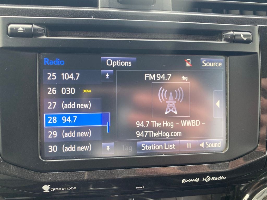 - Radio: Entune Premium Audio w/Navigation -inc: Entune Multimedia bundle (6.1" high resolution touch-screen w/split screen display, AM/FM CD player w/MP3/WMA playback capability, 8 speakers, auxiliary audio jack, USB 2.0 port w/iPod connectivity and control, advanced voice recognition, hands-free phone capability, phone book access and music streaming via Bluetooth® wireless technology), Siri Eyes Free, Entune AppSuite, HD Radio, HD Radio predictive traffic and Doppler weather overlay, AM/FM cache radio, SiriusXM satellite radio w/3-month complimentary all access trial, Gracenote album cover art and integrated backup camera display w/projected path, Entune App Suite includes Destination Search, iHeartRadio, MovieTickets.com, OpenTable, Pandora, Facebook Places, Yelp and Slacker Radio; real-time info including traffic, weather, fuel prices, sports and stocks Access to Entune services is subscription free. See toyota.com/entune for details.