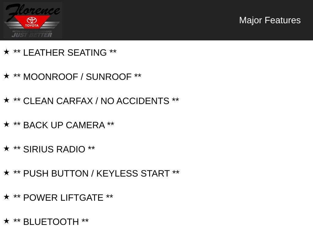 Touring Preferred Equipment Package: Bose 10-Speaker Audio Sound System; Power Sliding-Glass Moonroof with Interior Sunshade; Auto Dimming Rearview Mirror with HomeLink; Power Rear Liftgate. Rear Bumper Guard. **Equipment listed is based on original vehicle build and subject to change. Please confirm the accuracy of the included equipment by calling the dealer prior to purchase.**