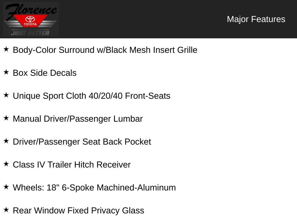 - Cloth 40/20/40 Front Seat -inc: 2-way manual driver/passenger adjustment and armrest