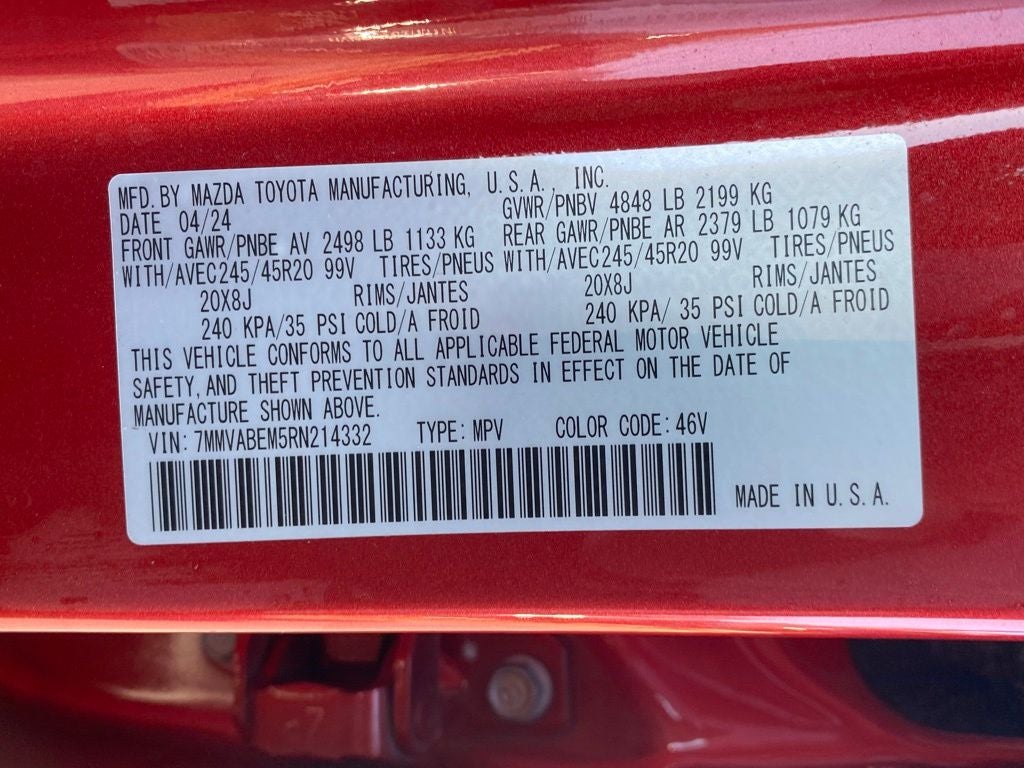 - Tires: P245/45R20 All-Season