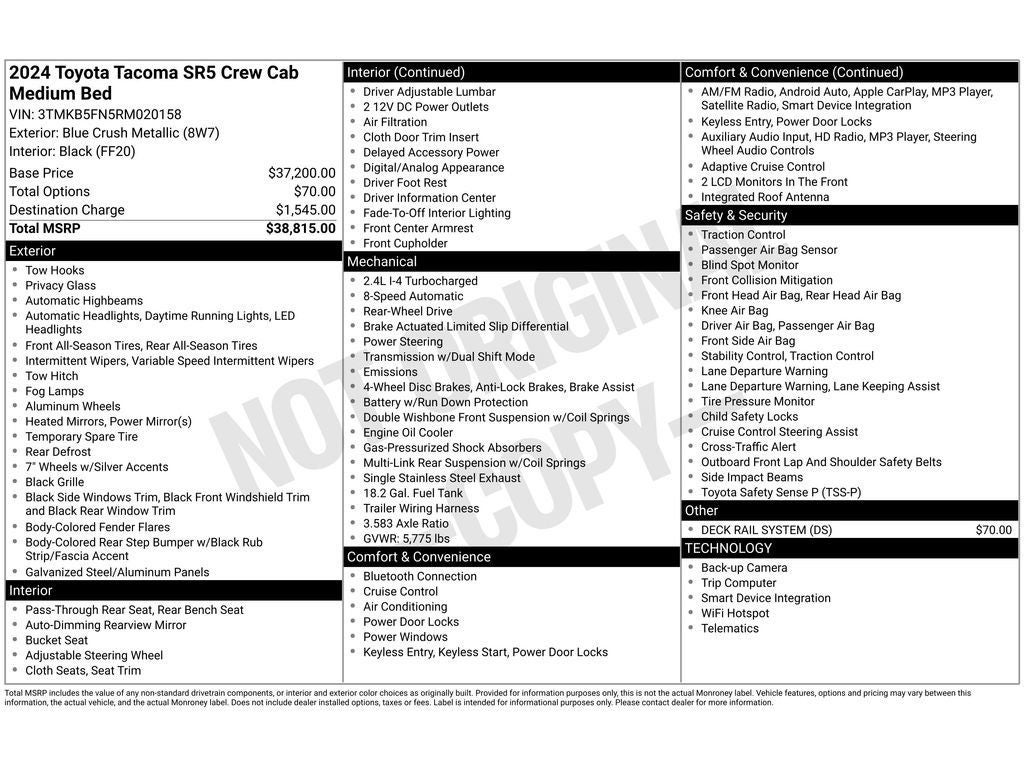 - Vehicle Name: Toyota Tacoma 2WD