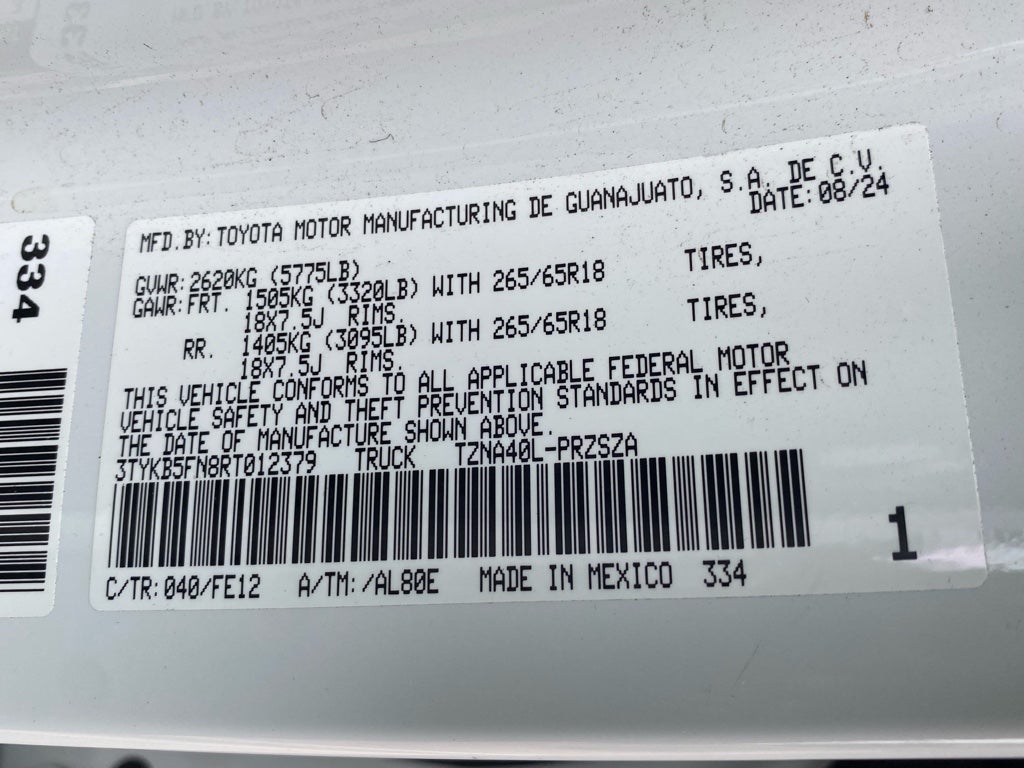 The Toyota Tacoma has a clean CARFAX vehicle history report. Never get into a cold vehicle again with the remote start feature on this unit. This vehicle is a certified CARFAX 1-owner. This small pickup's Cross-Traffic Alert: Safeguarding you from unexpected traffic when reversing. This 2024 Toyota Tacoma features a hands-free Bluetooth® phone system. This model enhances safety with a blind spot monitor, alerting drivers to potential dangers in adjacent lanes. Protect this vehicle from unwanted accidents with a cutting edge backup camera system. This Toyota Tacoma keeps you comfortable with Auto Climate. It offers Apple CarPlay for seamless connectivity. This model comes equipped with Android Auto for seamless smartphone integration on the road. Maintaining a stable interior temperature in the vehicle is easy with the climate control system. This unit shines with clean polished lines coated with an elegant white finish. This model has a 4 Cyl, 2.4L high output engine.