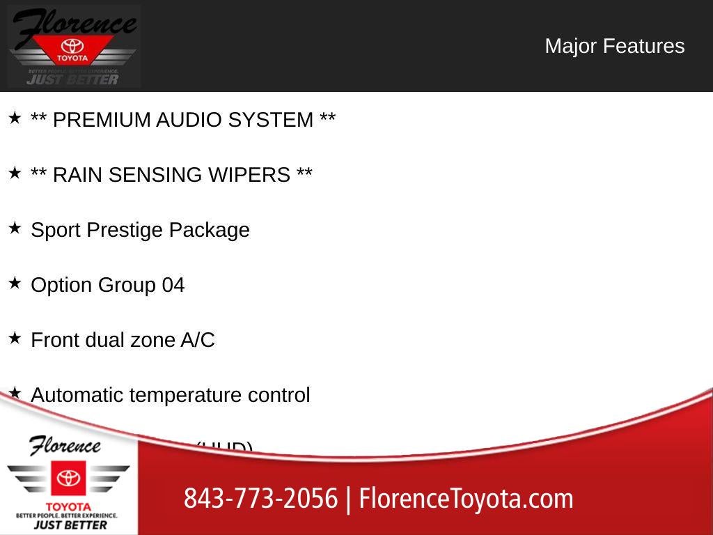 At Florence Toyota come see how our USED CARS are JUST BETTER. We offer the following benefits: Lifetime Power Train (Some exclusions apply), 1st Year Maintenance, $500 Additional Trade In Appraisal, 72 Hour Vehicle Exchange Program, Yearly Vehicle Appraisal & Safety Inspection, VIP Loyalty Program, Routine Express Service, Courtesy Service Shuttle, Express Buying Service. Also, as an added benefit we will buy your vehicle even if you don't buy ours!! Call today (866)830-0793 or visit us at www.florencetoyota.com *Customer must trade-in a vehicle to receive $1,000 Trade Assist credit that is included in the online price. **Financing must be provided by a third-party lender using this dealership's assistance for Customer to receive $1,000 Financing Assist credit that is included in the online price. See dealer for complete details.